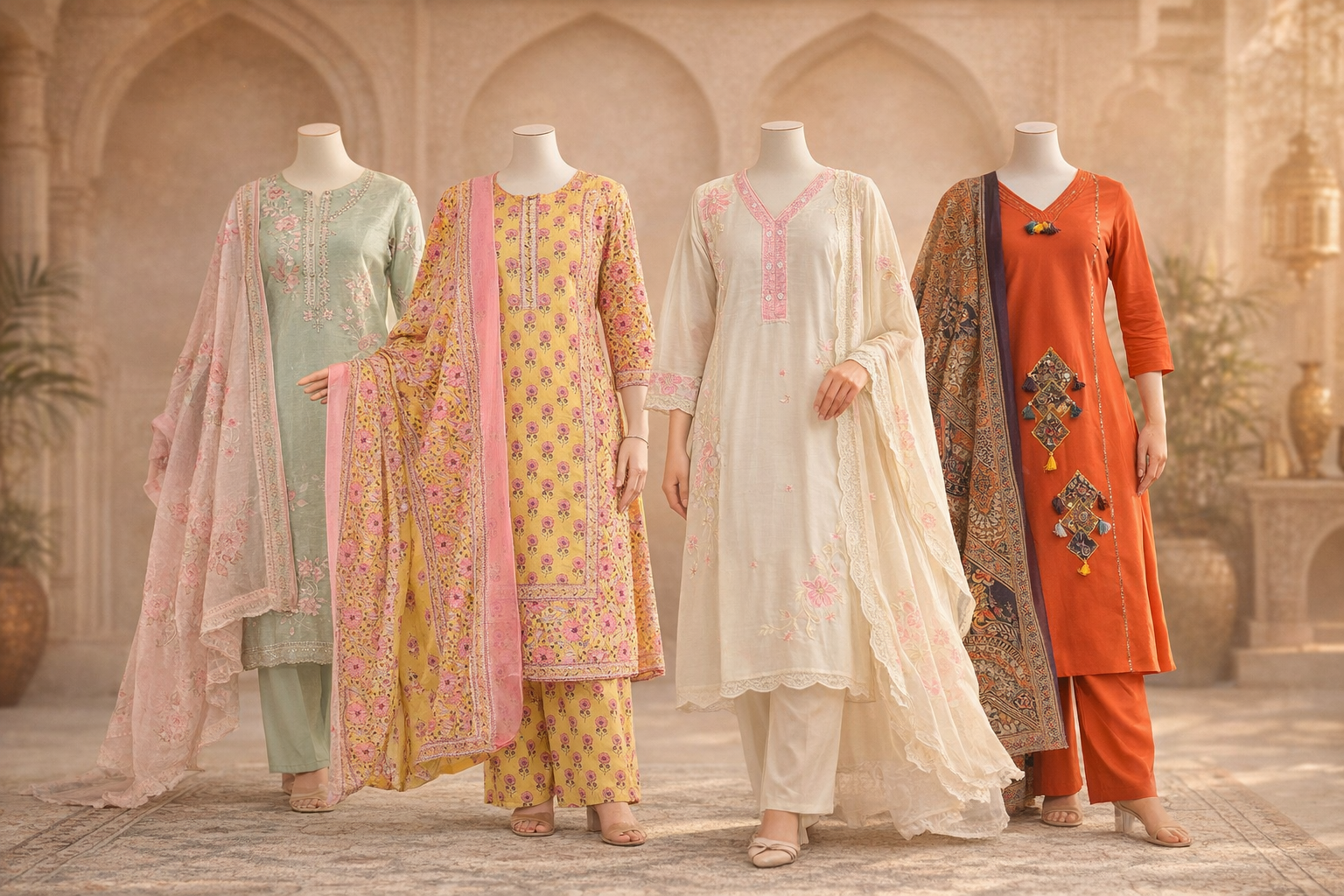 Pure Cotton Designer Kurti Set with Farsi Bottom & Dupatta