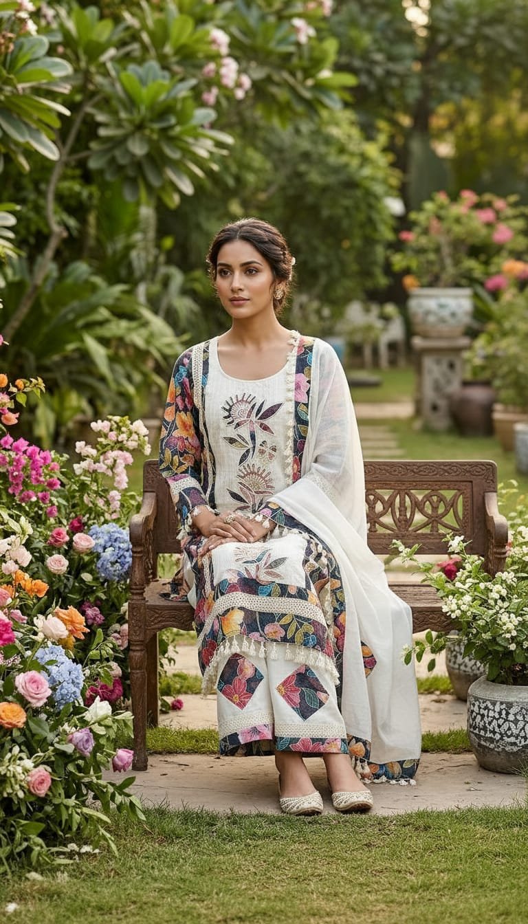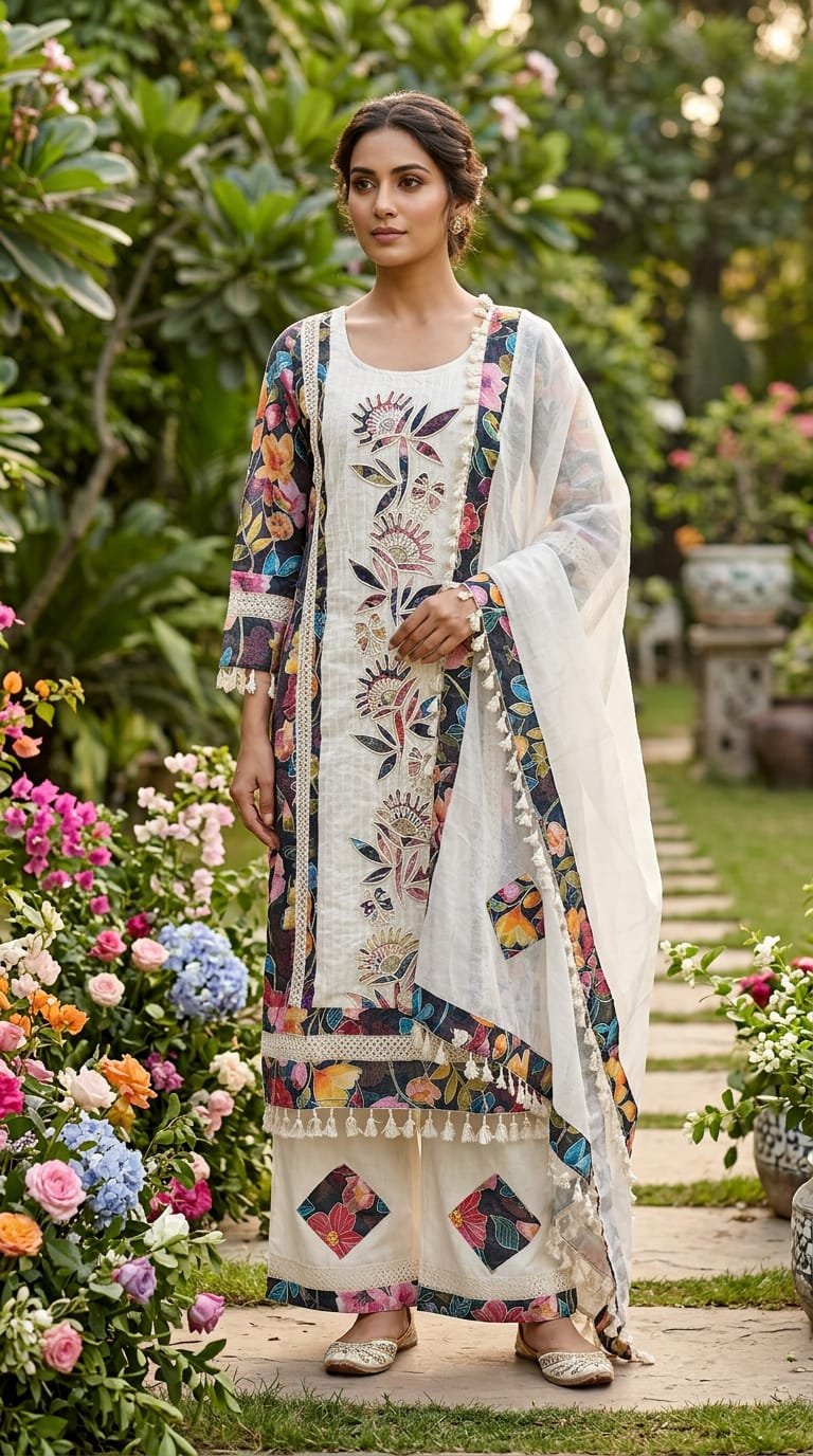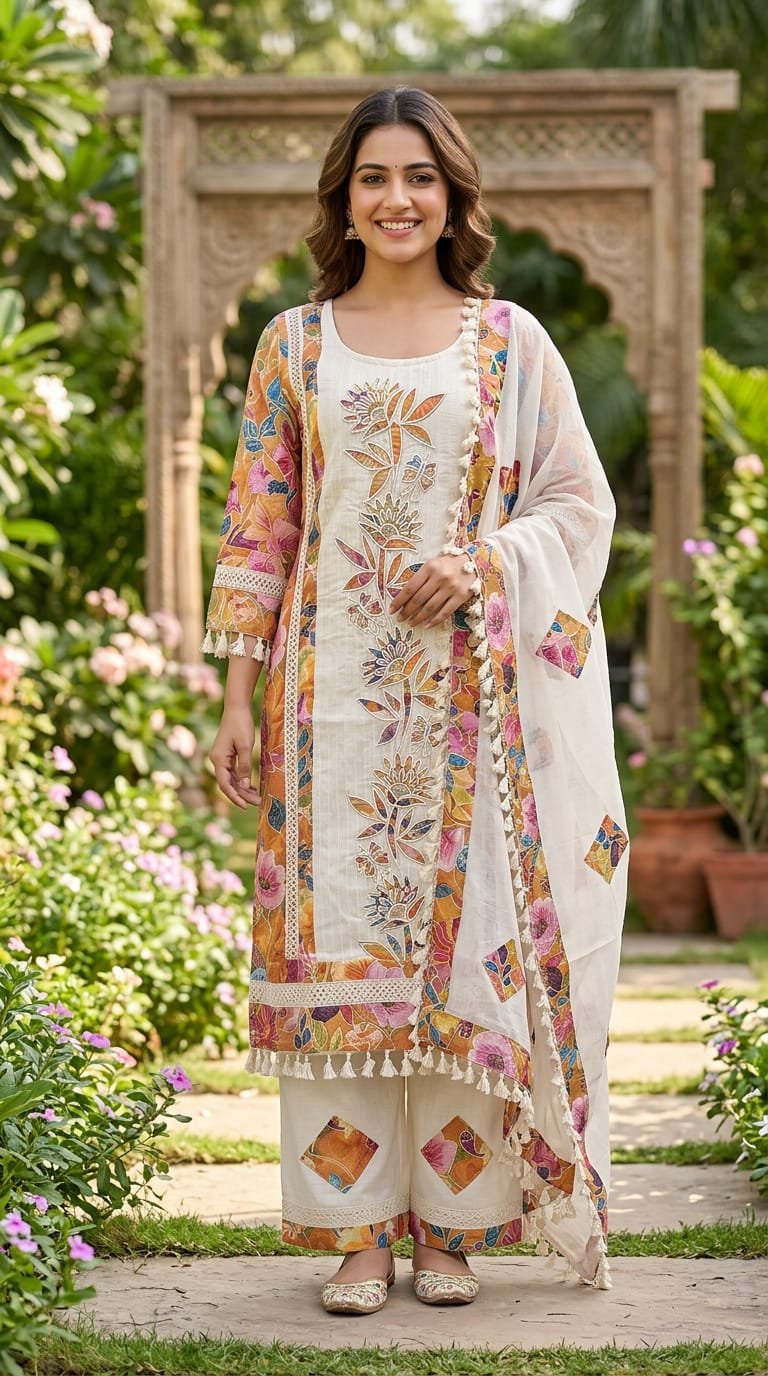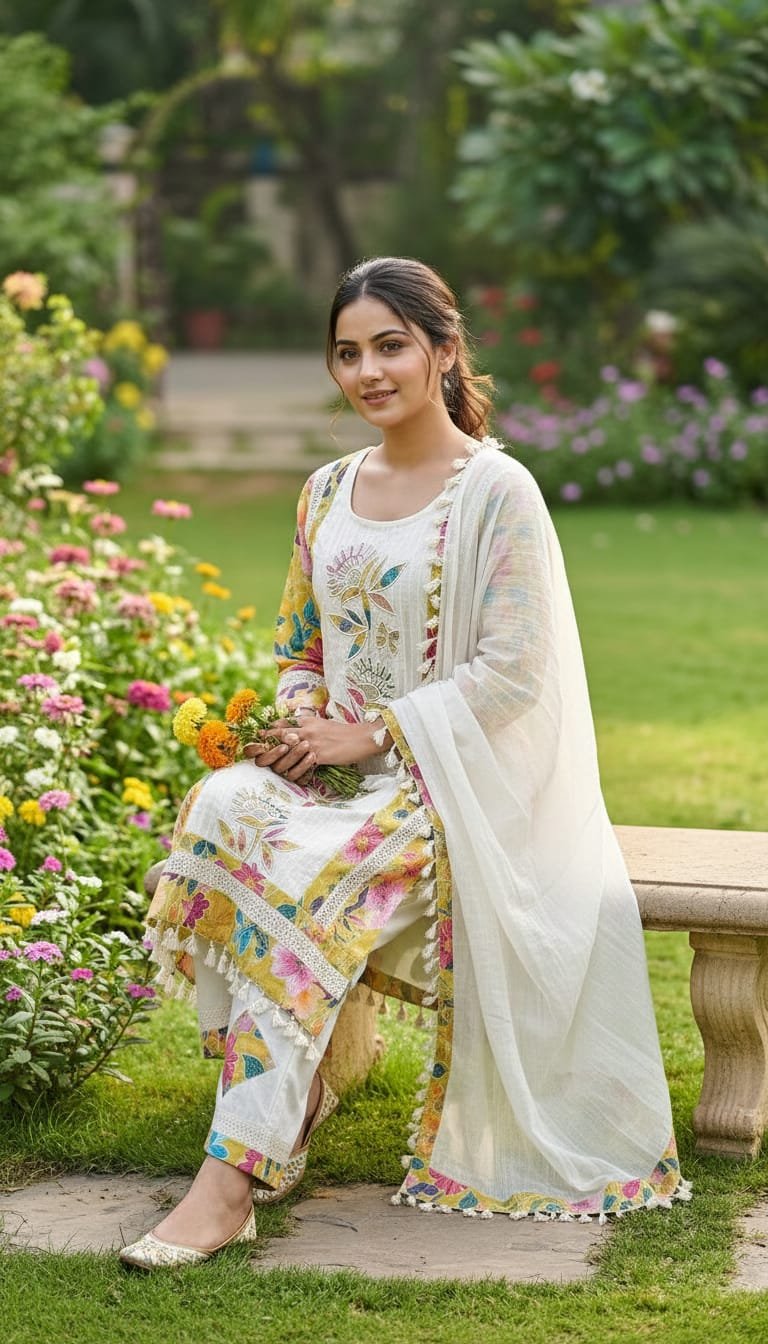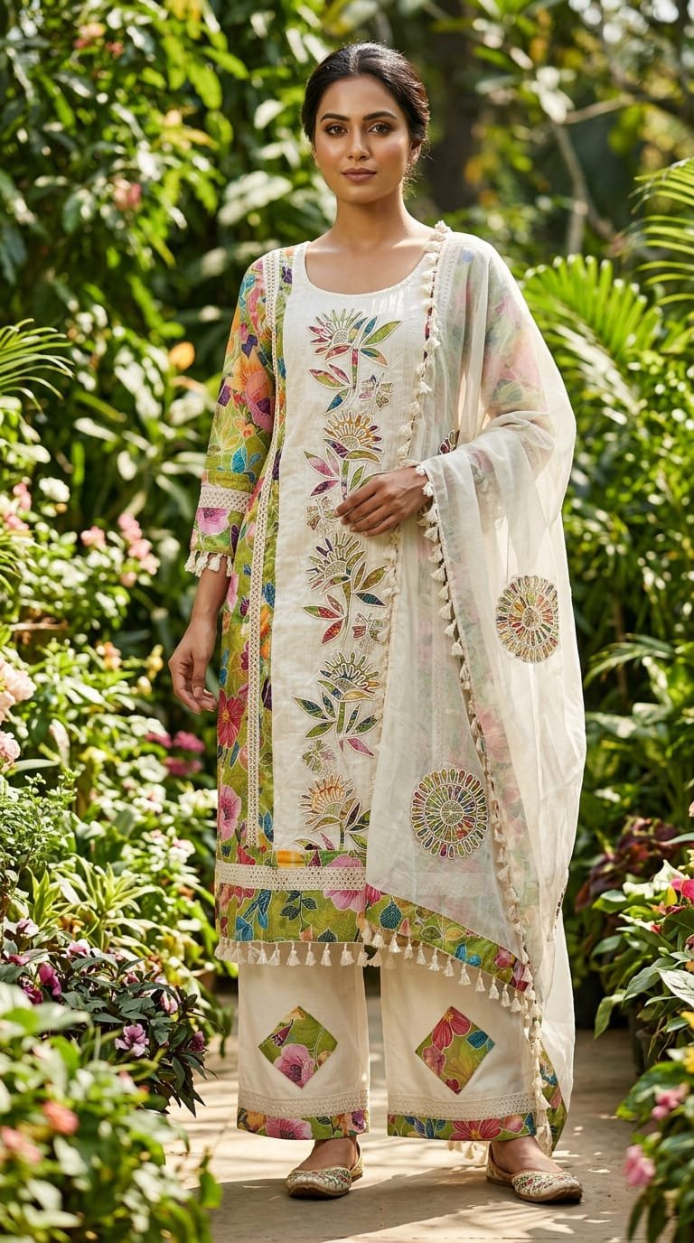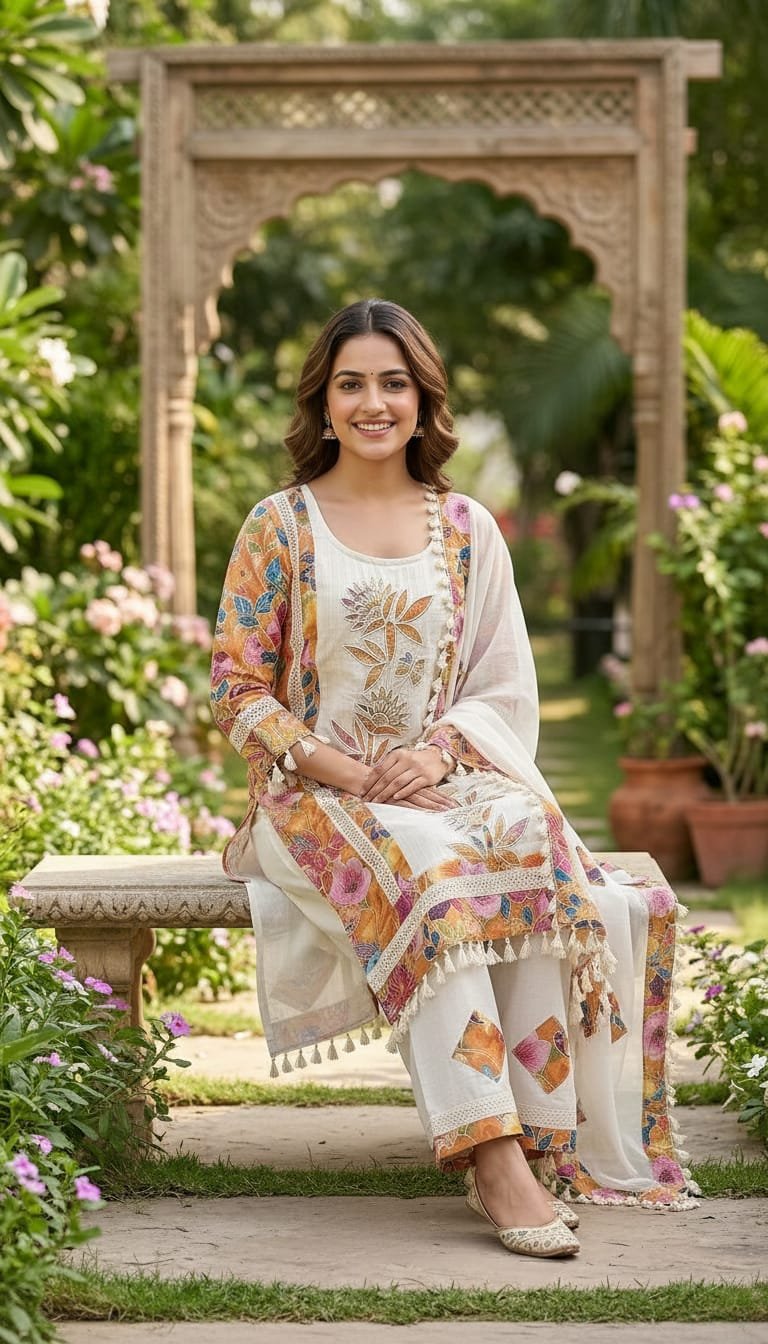 Artful appliqué detailing with a refined, contemporary finish. A statement in subtle craftsmanship.This pure cotton kurti set features elegant appliqué work, paired with comfortable pants and a complementing dupatta. Lightweight, breathable, and thoughtfully designed—perfect for the modern woman who appreciates detail in simplicity. Sizes: 38–44Free Shipping