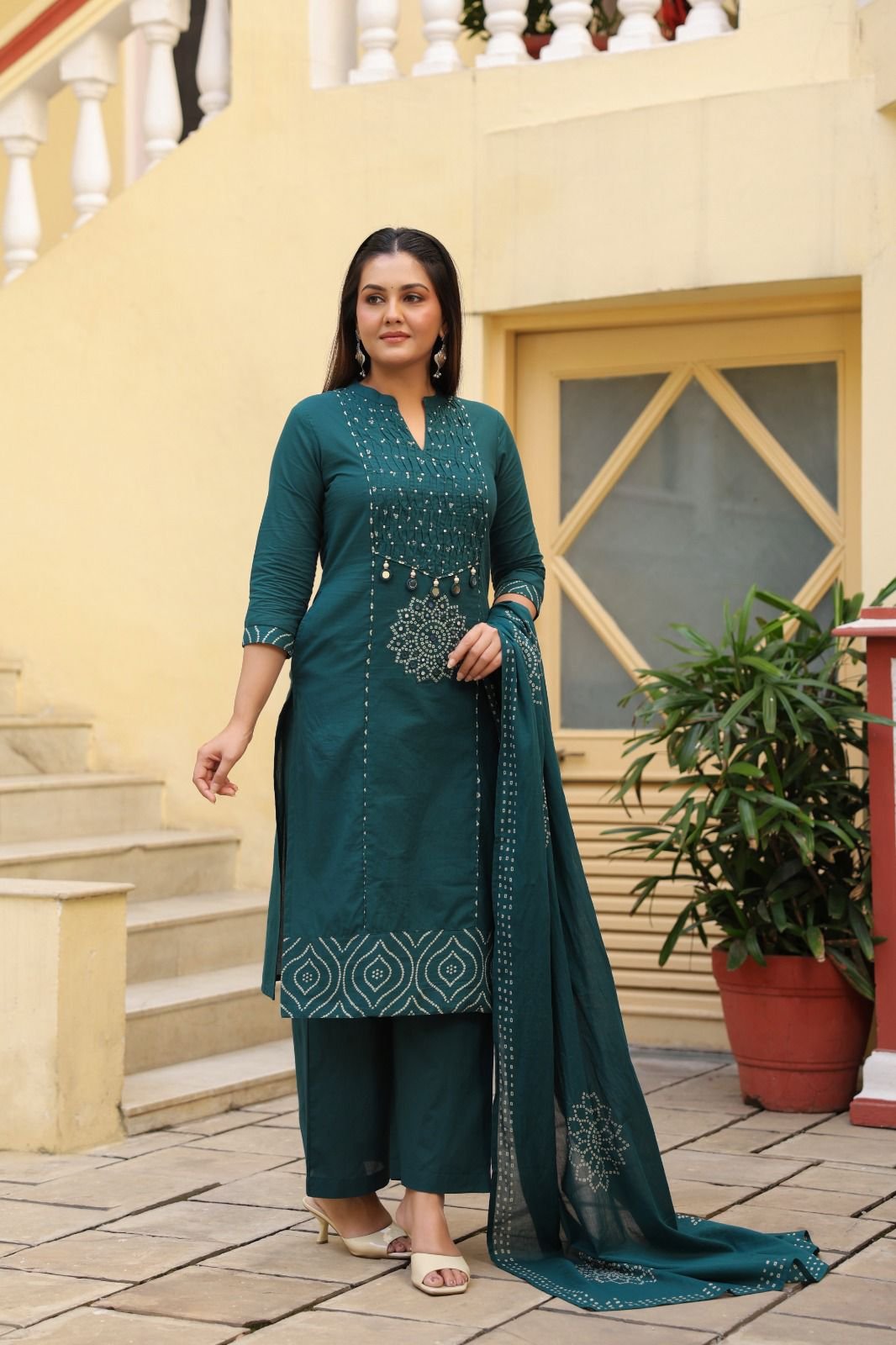 This pure cotton kurti set is paired with a complementing dupatta, offering a lightweight, breathable feel with a refined, modern silhouette. Easy to wear and versatile in style—perfect for the woman who prefers understated elegance in her everyday wardrobe.