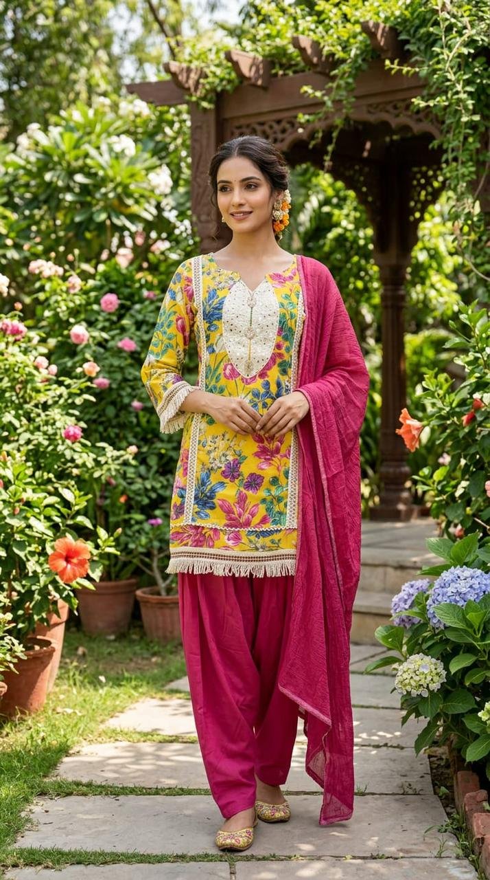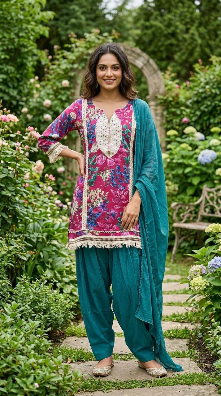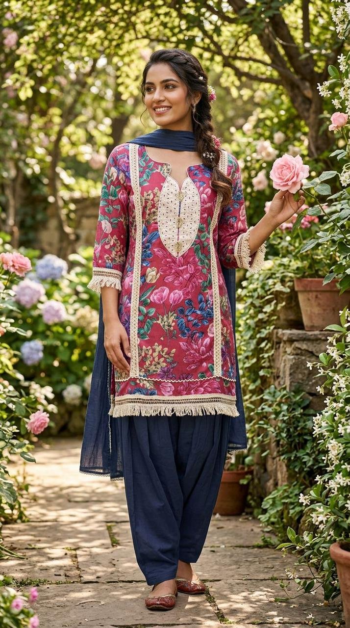This pure cotton kurti set is paired with a flowy Farsi bottom and a complementing dupatta, creating a silhouette that feels both distinctive and refined. Lightweight and breathable, it’s designed for the modern woman who appreciates comfort with a touch of traditional charm.